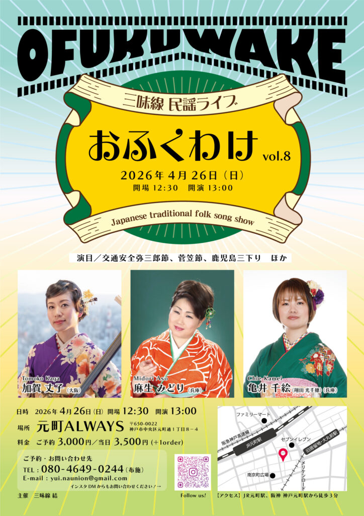 三味線民謡ライブおふくわけは、兵庫県神戸市発のライブイベントです。