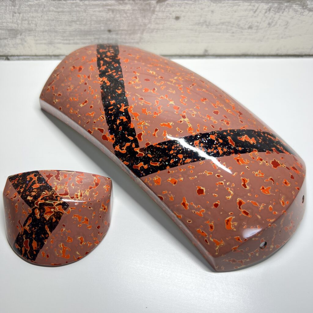 青森県の伝統的な技法である津軽塗りは、天然素材の国産漆を何層も塗り重ね、それを研ぎ出していくことによって独特な模様が出ます。